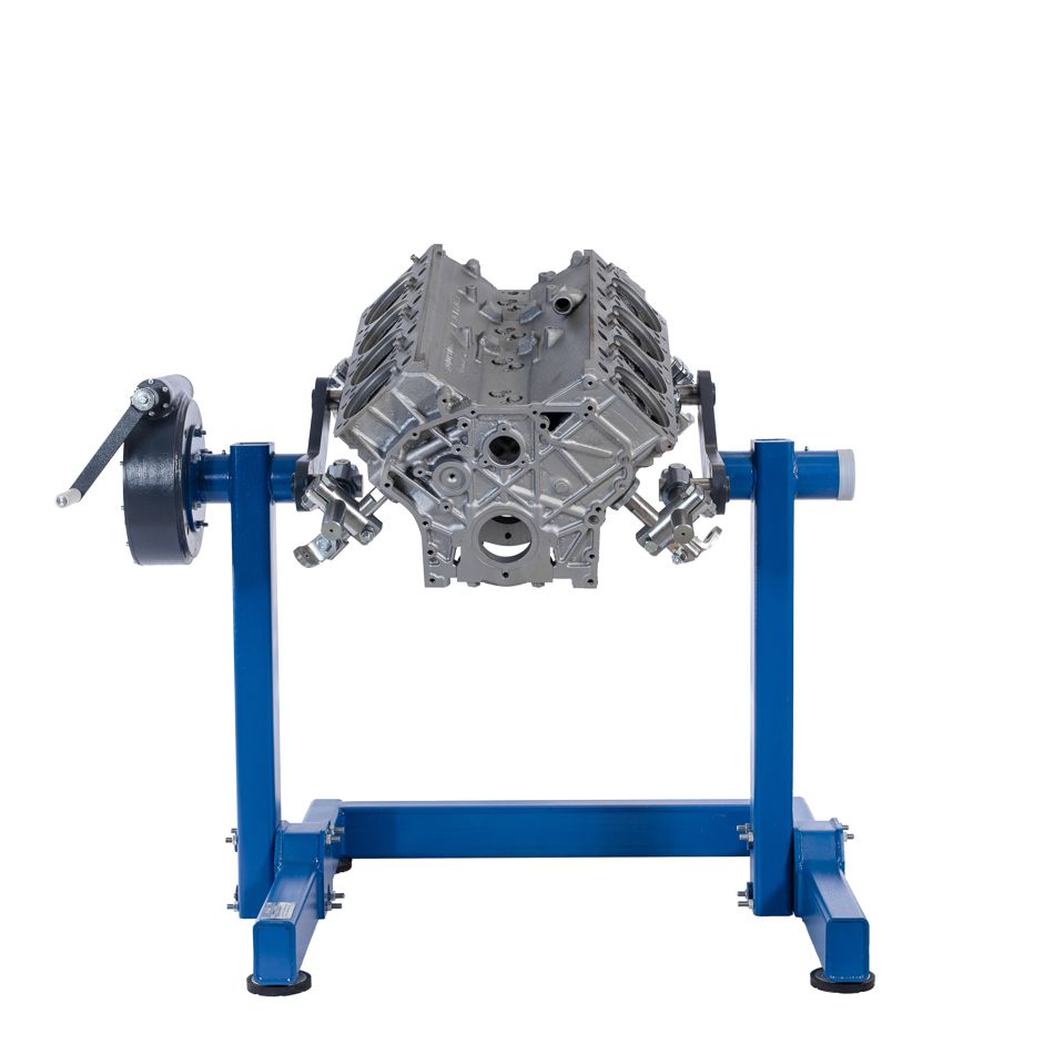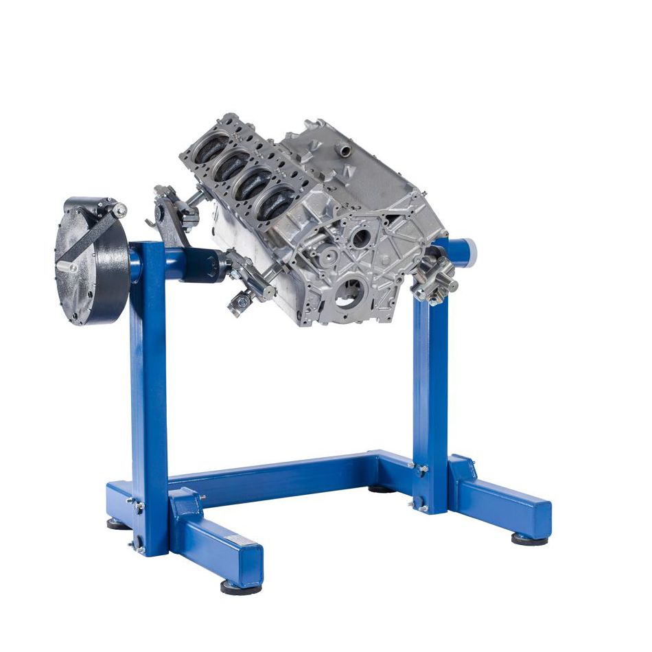- Самотормозящийся червячный редуктор позволяет повернуть и зафиксировать закрепленный на стенде двигатель или другой агрегат так, чтобы персоналу было удобно качественно производить ремонтные работы;